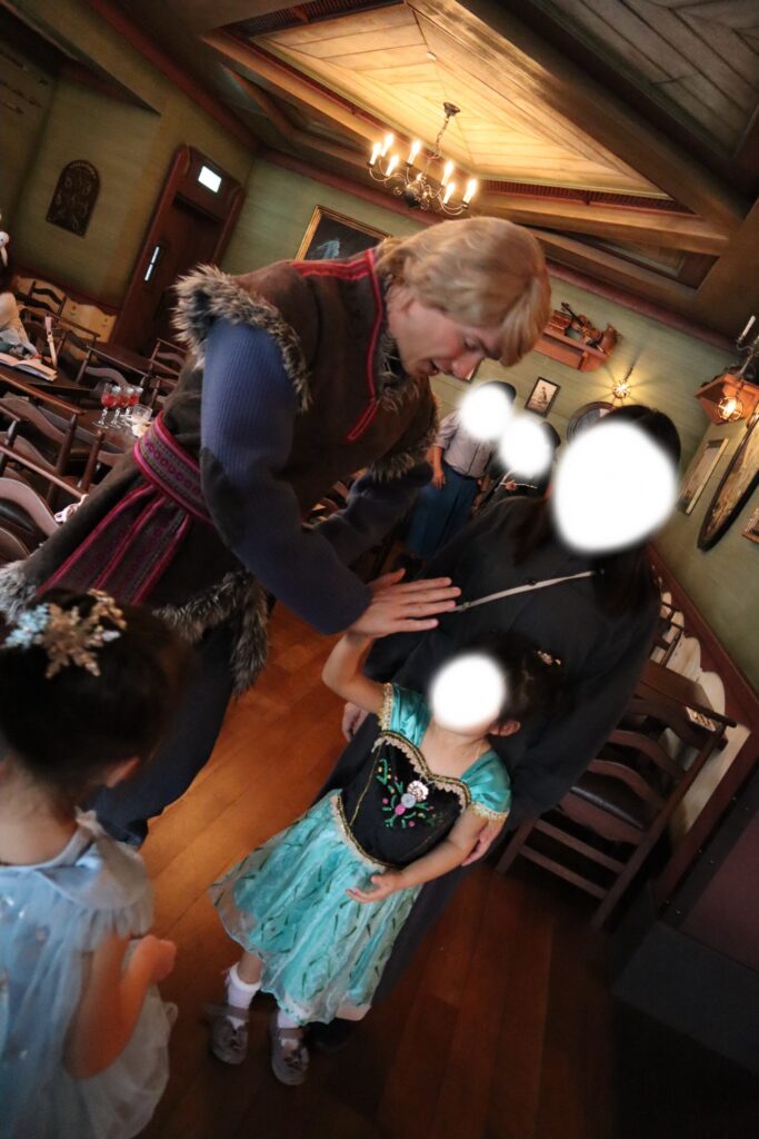 《グリーティング》と記載したアナとクリストフは、各テーブルをまわってサインや写真を撮ってくれます。写真は1組1ポーズのみです。